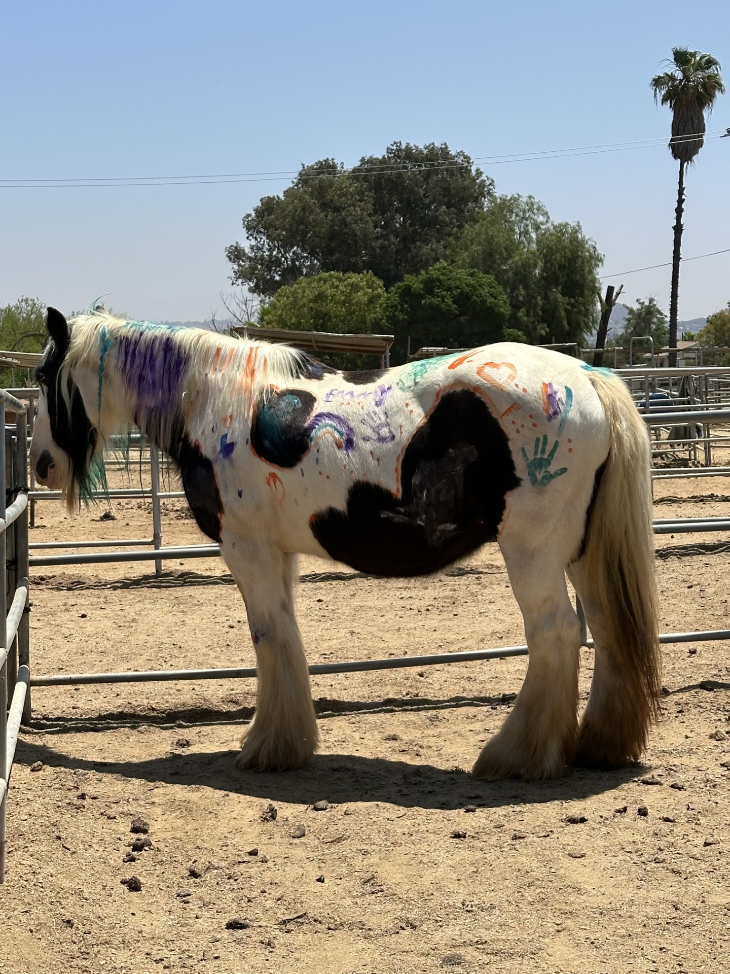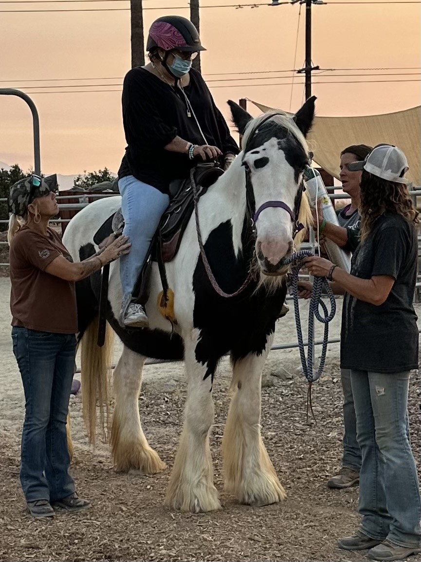 Hello everyone! I am so excited to share my story of how I came to TTRC. I am a Gypsy Vanner mare and was born in 2005. I was a broodmare in Moro Bay and loved riding with my foals following on the beaches. My favorite treat is watermelon! Yum!